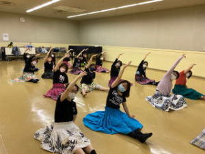 久しぶりのレッスンなのでケガをしないよう入念な準備体操(何故かお行儀の悪いY女子笑)
