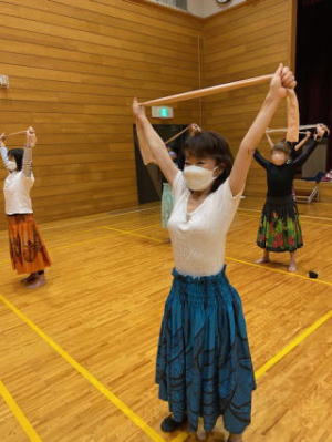 そんな時は決して無理をせず、遠慮なく途中で休憩したり自分の体調に合わせてレッスしてくださるようお願いしています。年齢を重ねていくとどうしても背筋や膝の後ろが曲がり気味になってくると思うのでハウオリでは踊りに入る前に準備体操、背筋伸ばしや膝を伸ばしての前屈、腰回しなどなどフラやタヒチアンの曲に合わせて身体慣らしを行なっています。怪我予防にもなるし、ピンと背筋を伸ばして更にステキにフラが踊れるように頑張っています